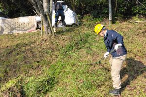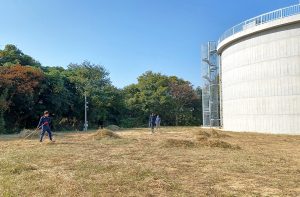 当社は荒尾市企業局と合同で、水道施設である屋形山配水池および屋形山登山道の除草作業を行いました。